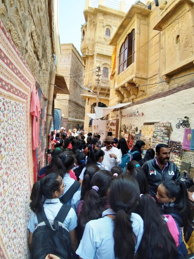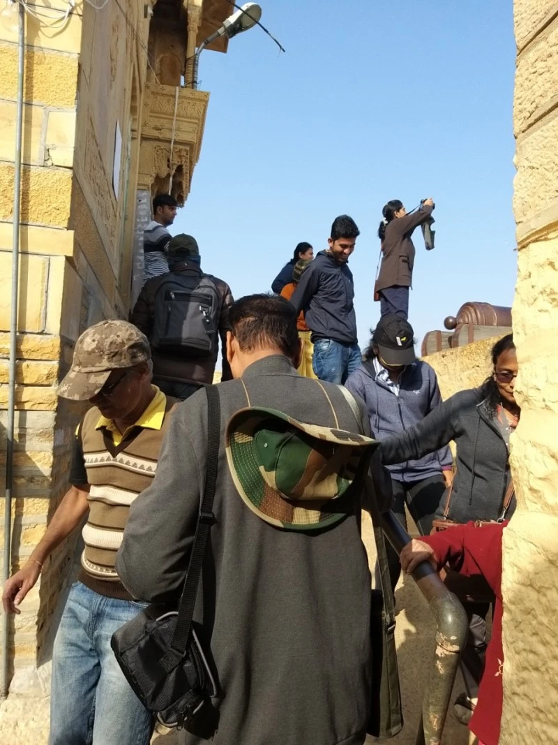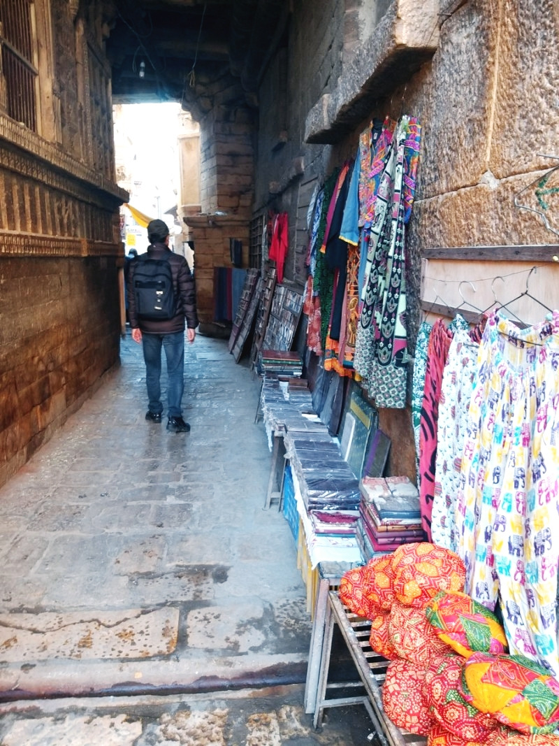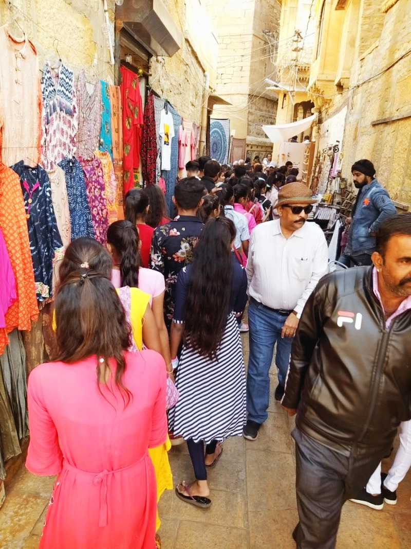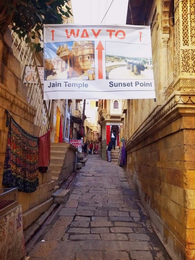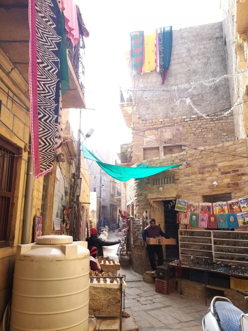 자이푸르의 화려한 외벽의 '하와 마할'과 조드푸르의 웅장하고 멋있었던 '메헤랑가르 성'을 먼저 보고 넘어왔던 우리는 사실 큰 기대는 하지 않았다. 외벽의 생김새가 너무 소박하고 평범해 보였던 자이살메르 성이었다. 호텔에서 나와서 쉬엄쉬엄 걸어서 성 구경에 나섰다.