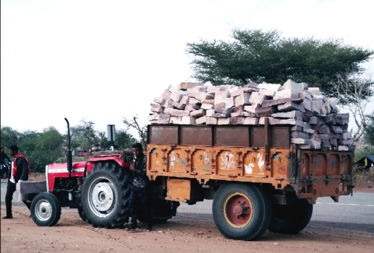 돌을 넘치도록 실은 트럭들이 황무지 도로 위를 달리는 모습이 우리가 본 유일한 풍경이었다. 덮개도 없이 돌을 가득 쌓아 올린 트럭들이 우리 눈에만 위험해 보이는지 택시가 자꾸 그 뒤를 따라가서 기겁을 했다. 인도인들의 안전불감증은 그곳도 마찬가지였다. 우리 얘기를 듣고 그제야 기사는 트럭을 피해서 운전을 해 주었다.