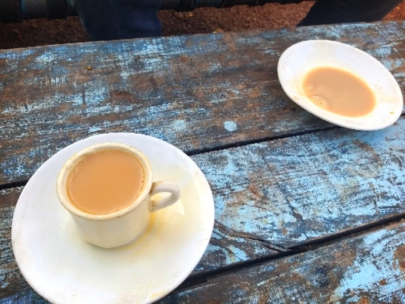 잔 받침대에 넘치도록 부어 주는 짜이가 남편은 못마땅한 듯했지만 주변을 둘러보니까 인도 남자들 모두가 잔 받침대에 짜이를 부어서 식히면서 마시는 것이 보였다. 문화의 차이가 그런 것이었다. 첸나이에서는 한 번도 못 본 광경이었다. 자칫 손님에 대한 예의가 아닌 것으로 오해할 뻔했다. 그래도 우리는 컵째로 호호 불어가며 생강향 가득한 뜨거운 짜이를 우리 식대로 마셨다. 여행길의 피로도 풀렸고, 졸린 눈꺼풀도 추켜올려졌다.