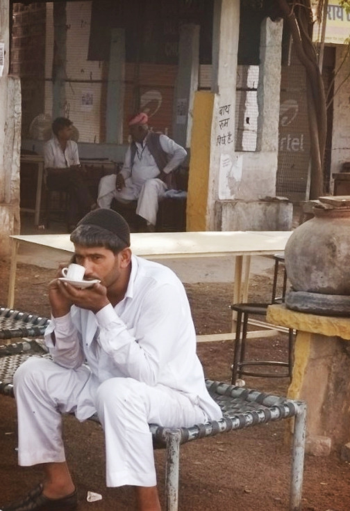 두어 시간 가다가 차를 세웠다. 채소도 있고, 짜이 장수도 있는 도로변 가게 앞이었다. 그러고 보니 오후 4시, 인도인들의 짜이 타임이었다. 우리도 내려서 짜이(thai:인도를 비롯한 남아시아 지역의 밀크티)를 한잔 마셨다.