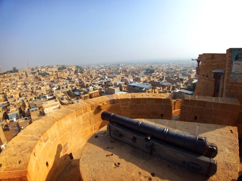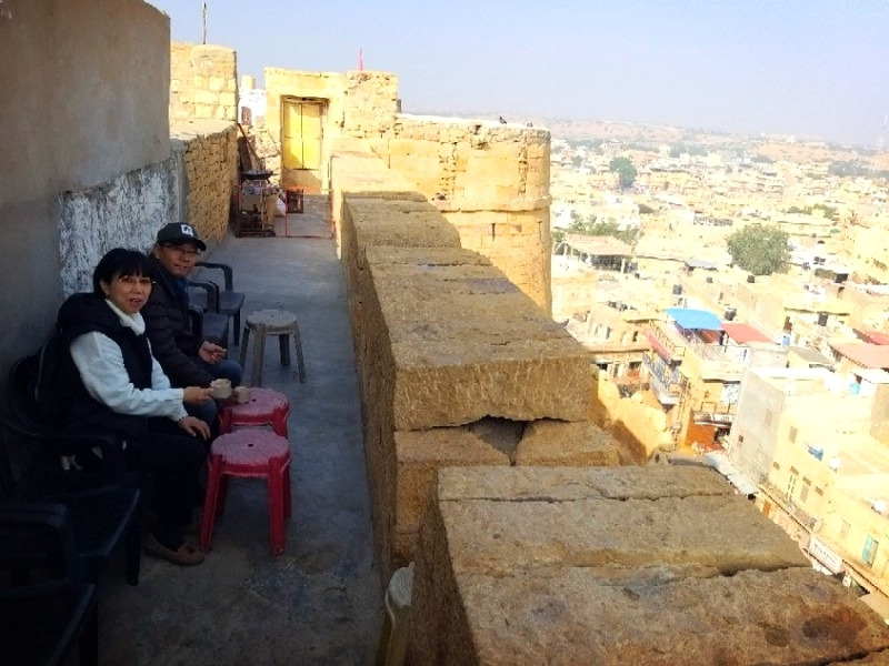 마지막 계단을 밟고 올라서는데 저절로 감탄사가 터져 나왔다. 성벽 끝의 높은 곳에 대포가 놓인, 자이살메르 마을이 내려다 보이는 뷰가 끝내주는 장소였다.