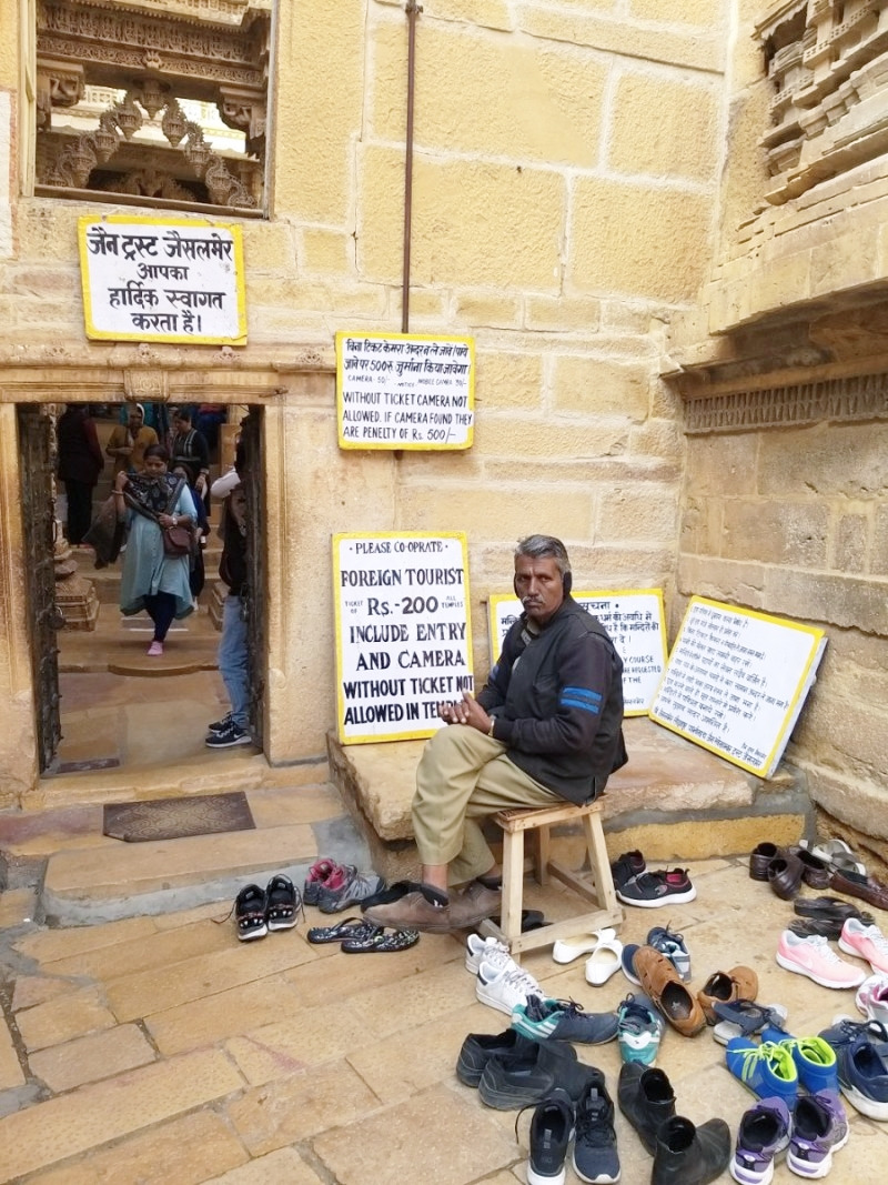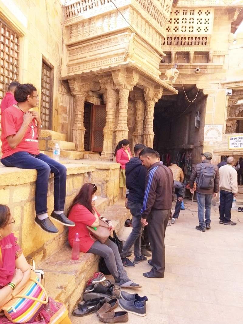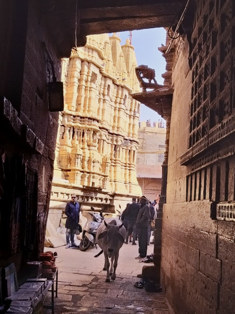 범상치 않은 건축물이 보였다. 맨 처음 입구에서 본 이정표 사진에 있던 '자이나교 템플'이었다. 남인도에서 많이 본 '힌두교 템플'과는 다른 형태였고 내부도 심플했다. '골든 시티'의 템플 답게 눈에 띄는 노란빛의 예쁜 건축물이었다.