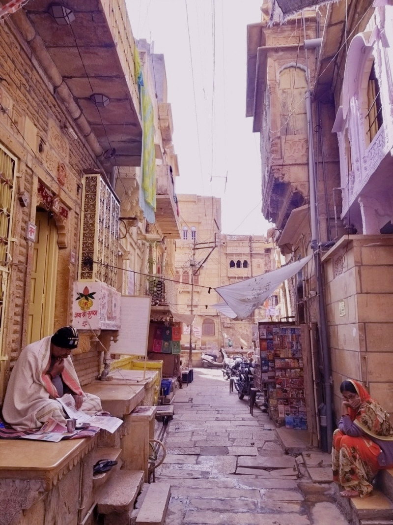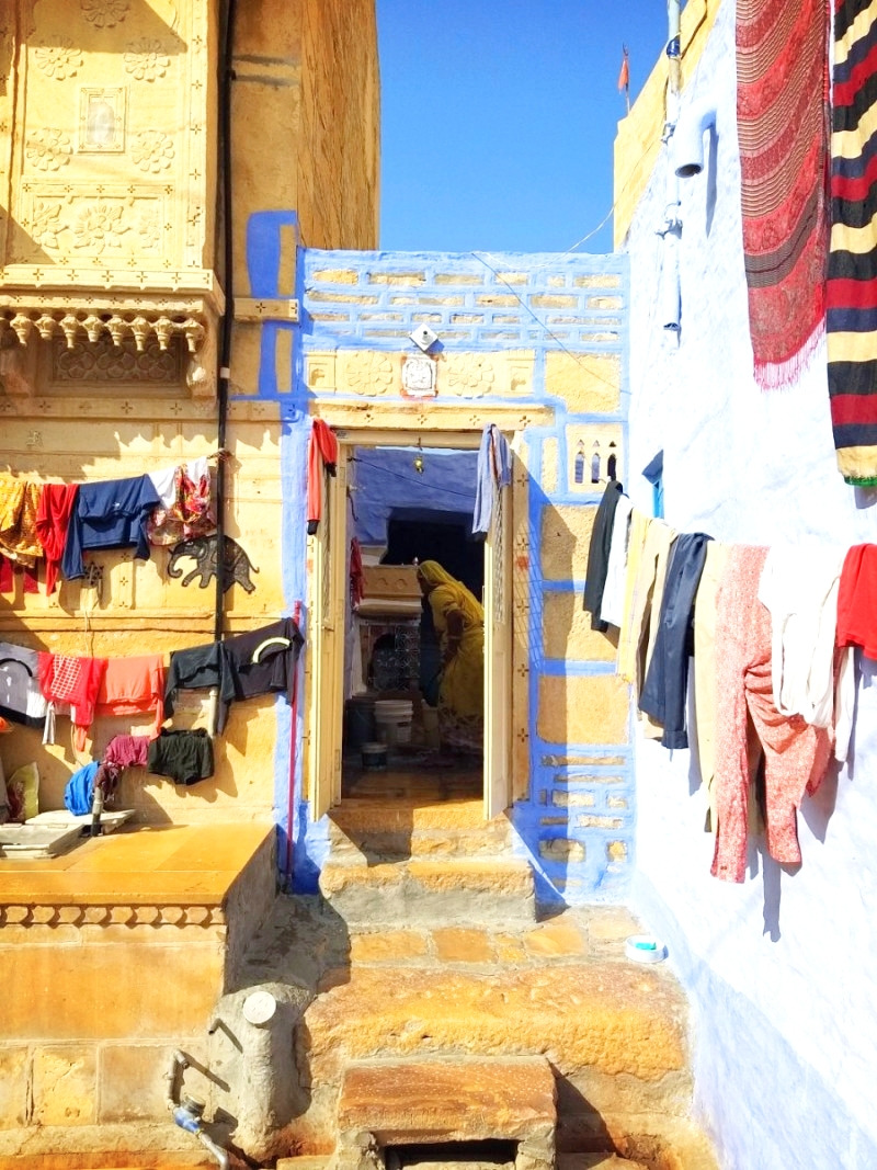 여행 중에 별것 아닌 것에 눈길이 가고 감동을 받을 때가 있다. 자이살메르 성안에서 내 눈길이 갔고, 감동을 받았던 풍경의 한 곳은 바로 이곳이었다. 햇빛과 함께 화사한 그 모든 풍경이 너무 따뜻했고 평화로웠고 아름다웠다.