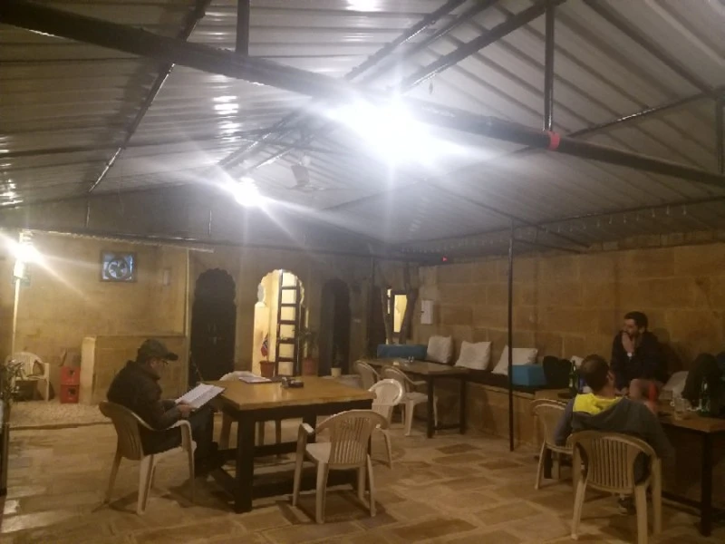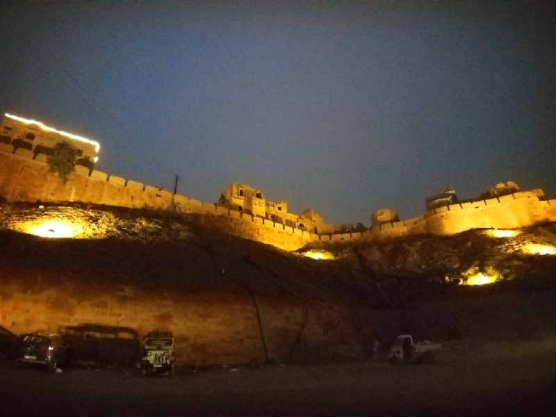 짐을 내리고 호텔 입구 쪽으로 걷다가 별생각 없이 고개를 돌렸다. 황금색 성벽이 검은 하늘을 배경 삼아서 눈앞에 가득, 환하게 빛나고 있었다. 밝은 성벽 외에는 그 무엇도 없는 야경이었다. 예약한 호텔이 성벽 바로 코 앞이었다. 아고다에서 대충 가격대만 보고 예약한 호텔들이 여행 내내 만족스러워서 다행이었다. 자이살메르에서도 역시나 그랬다.