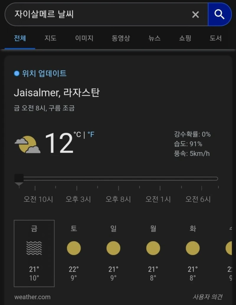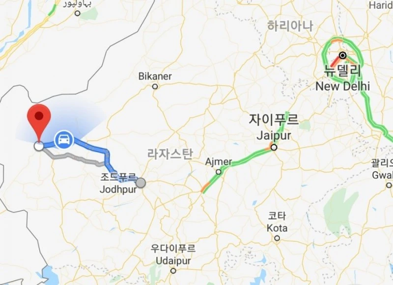 귀국 비행기 예약부터 해 놓고 여행 루트를 잡다 보니 시간이 좀 빠듯했다. 그래서 라자스탄은 3개 도시만 돌아보기로 했었다. '우다이푸르'는 포기하고 '자이살메르 사막'에서의 1박을 선택한 우리였다. 해가 지면서 갑자기 추워진 날씨가 사막이 가까이에 있다는 기분이 들면서 사막에서의 1박이 기대되었다.