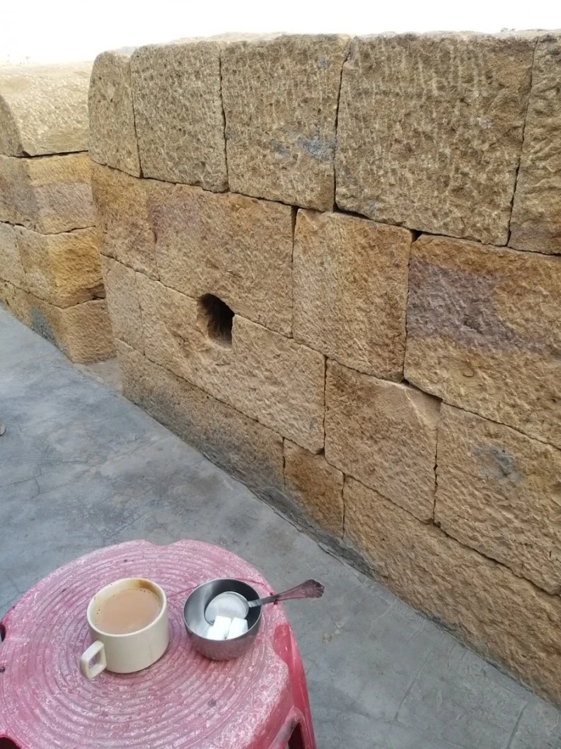 낡은 플라스틱 의자 위에 밥숟가락이 얹어진 설탕 그릇과 볼품은 없는 사기 잔에 담긴 짜이가 올려졌다. 하지만 세상 어디에도 없는 우리만의 멋진 카페였다. 그런 곳에서 그런 멋진 풍경을 바라보면서 그런 유니크한 테이블을 앞에 두고 마시는 짜이 한잔은 말 그대로 환상이었다.