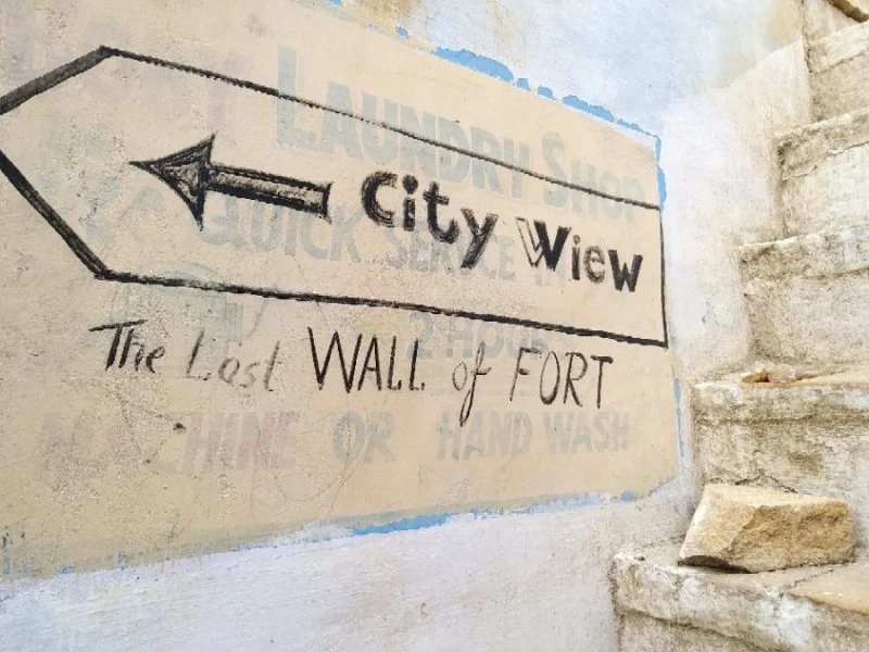 혼잡한 입구를 빠져나오자마자 광장이 보였다. 사람들이 많아서 어수선한 느낌과 함께 활기찬 기분을 함께 받았다. 대부분의 사람들이 높은 계단이 있는 오른쪽으로 향하는데 우리는 다소 한적한 왼쪽 길을 택했다. '자이나교 템플과 선셋 포인트'라는 이정표가 가리키는 방향이었다.
