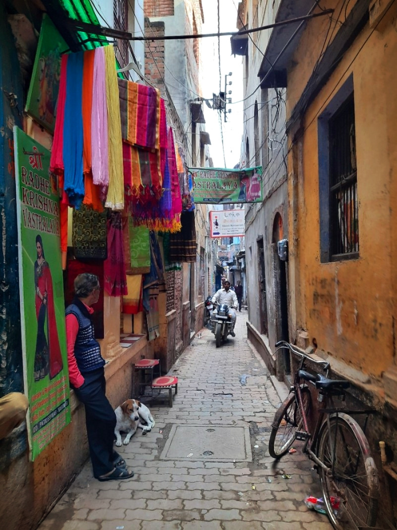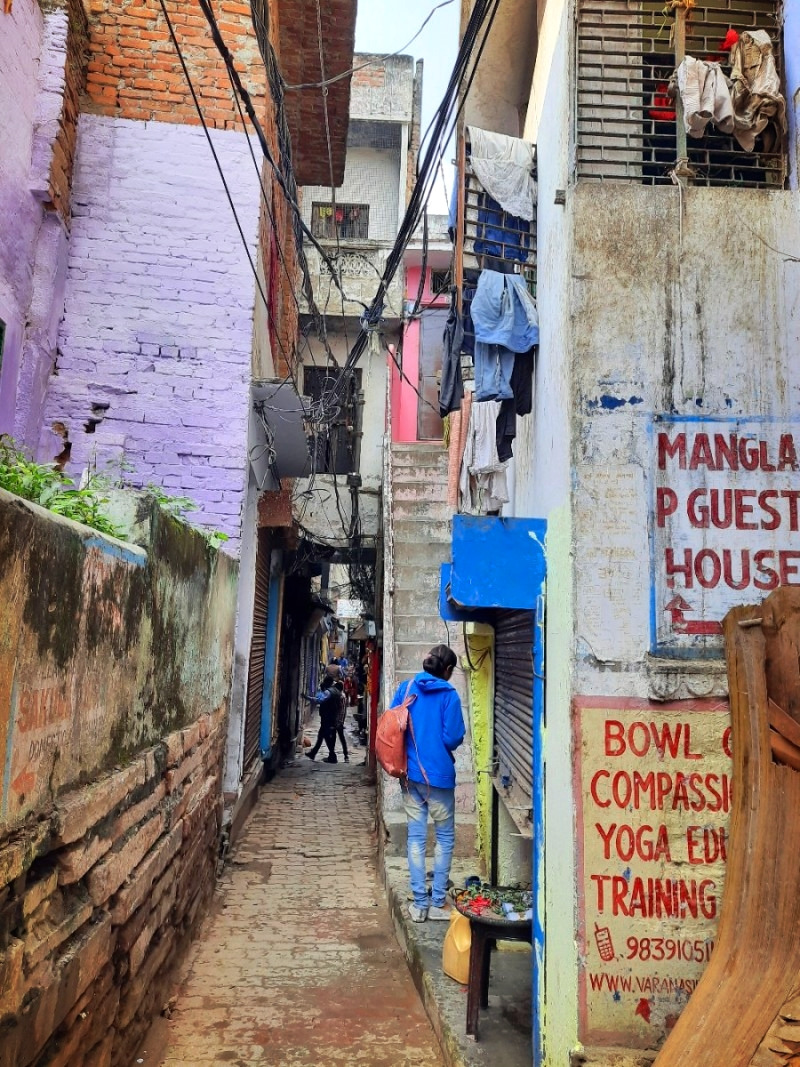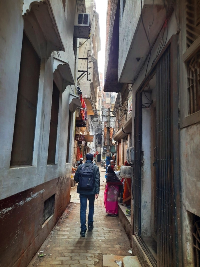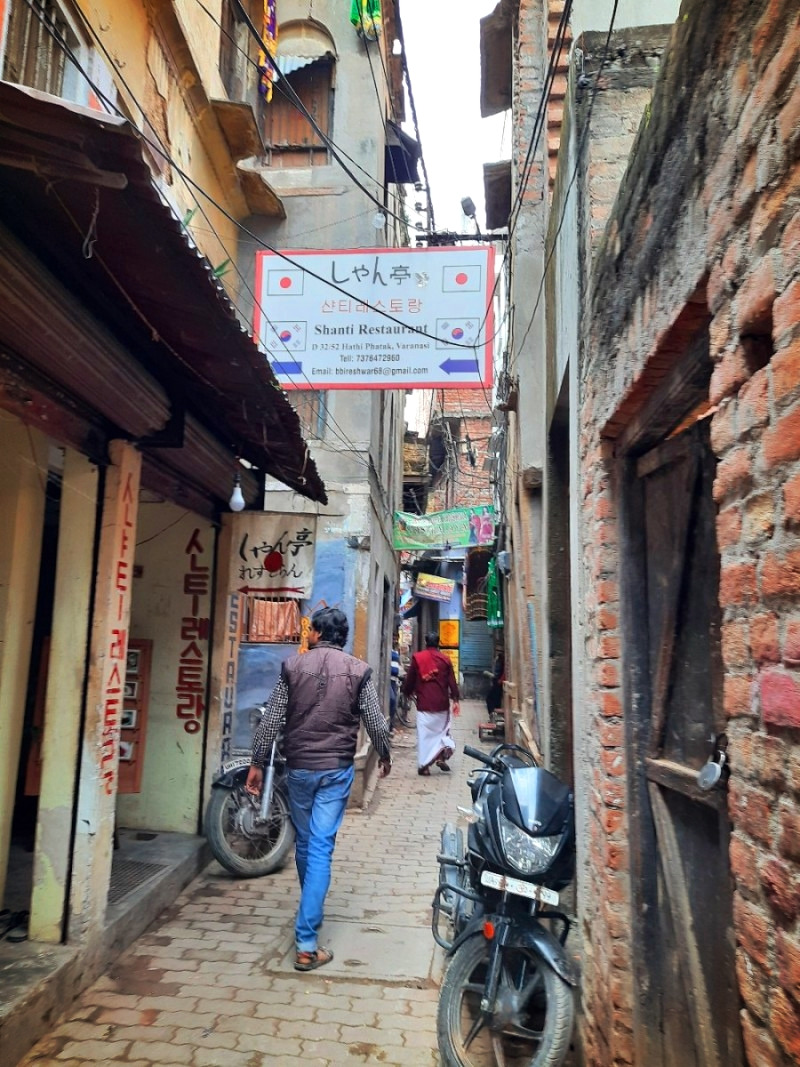 구글맵이 가리키는 대로 길을 걸었다. 강 바로 근처인 것 같은데 강의 반대쪽에서 자꾸 골목으로 걸어가라고 했다. 덕분에 바라나시 골목길 구경을 할 수 있었다. 좁은 골목을 이리저리 걸으며, 우리가 좋아하는 사람 사는 구경을 실컷 했다.