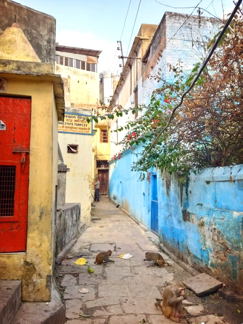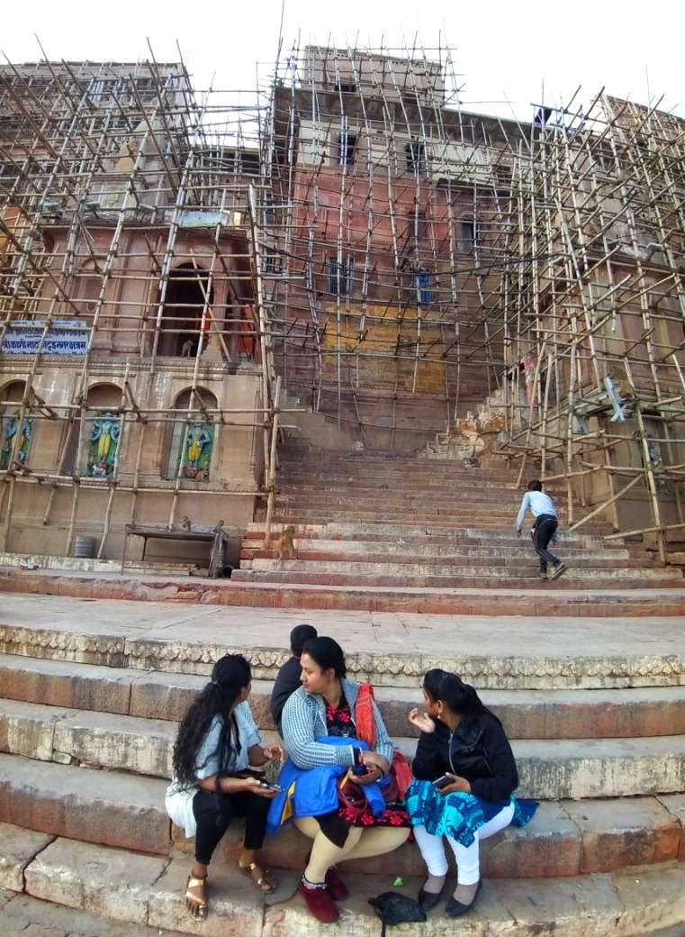 저녁 보트 투어 예약을 해놓고 갠지스강 쪽으로 내려왔다. 골목에서 이번에는 원숭이 떼와 마주쳤다. 새끼 원숭이들은 길바닥에 떨어진 무언가를 주워 먹고 있느라 우리는 신경도 안 쓰는 눈치였는데 우리만 그 원숭이들이 불편했다. 다 먹고 갈 때까지 기다리는 수밖에 없었다.