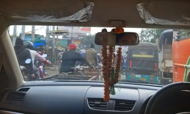 낮에도 여전히 갠지스강 방향으로 가는 길은 체증이 많이 심했고, 한참만에 택시가 우리를 내려 준 곳은 혼잡한 어느 도로변이었다.