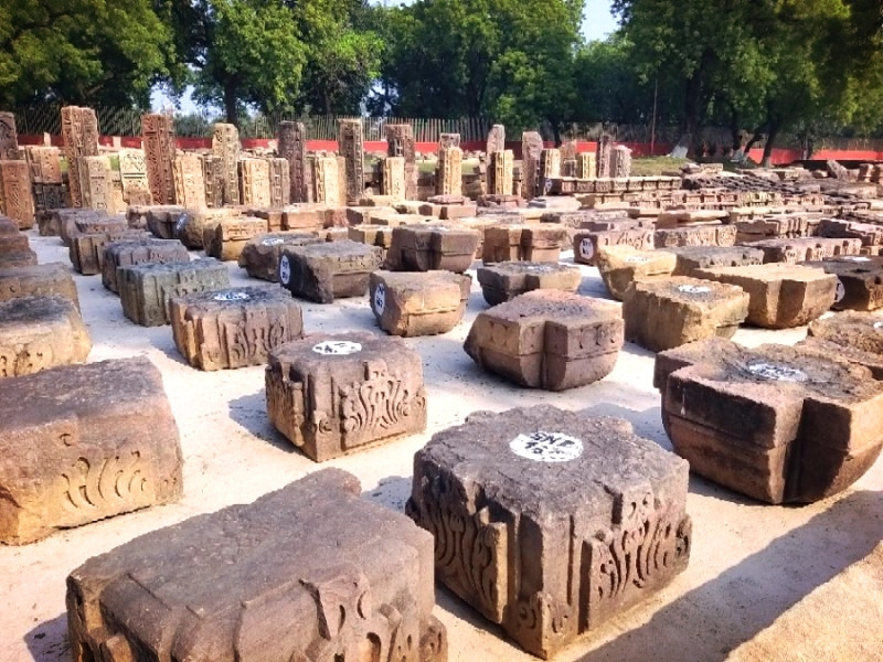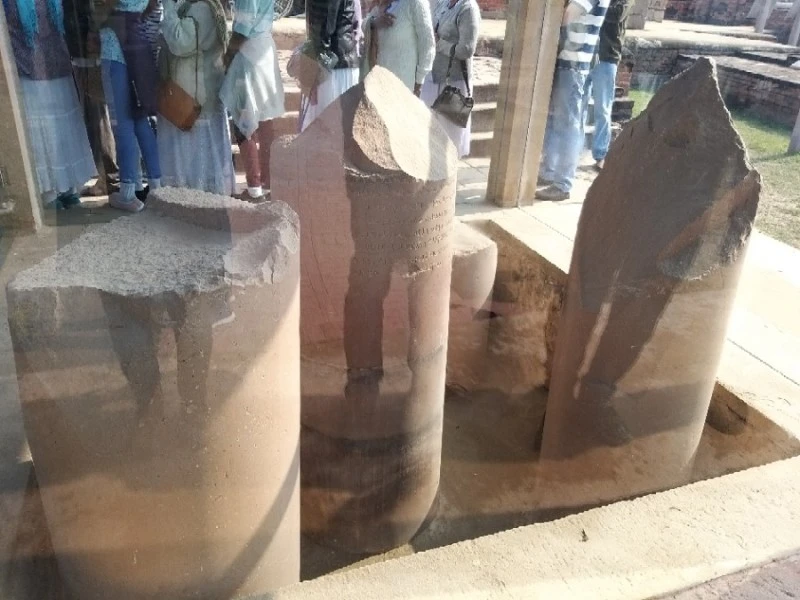 사람들이 많이 모여있는 곳이 있어서 궁금해서 다가갔더니 아소카왕의 조칙이 새겨진 석주(Ashkan pillar)였다. 귀중한 유산인지 깨어진 돌기둥들이 유리벽에 둘러쳐져 있었다.