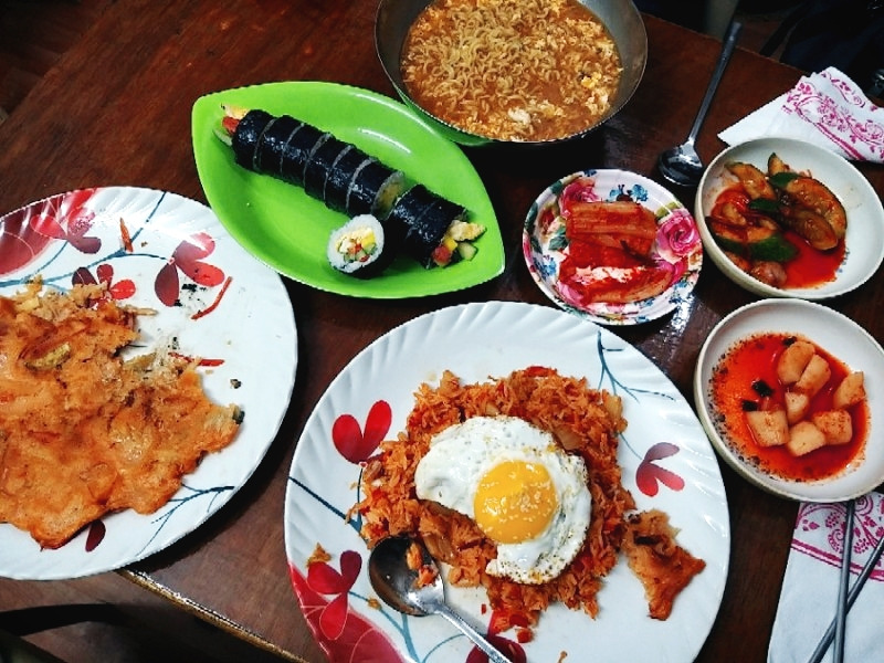 열흘만에 한국음식을 실컷 먹었다. 인도 아줌마의 솜씨라고 믿기지 않을 정도로 거의 한국 맛 그대로였다. 라면은 맛이 다를 리가 없었고, 김치볶음밥과 김치전도 거의 비슷한 맛이 났고, 재료가 달라서 조금 맛이 덜한 김밥은 라면 국물에 적셔서 먹으면 되었다. 배추김치, 깍두기도 너무 반가웠고, 오이무침은 꼭 내가 만든 듯했다.