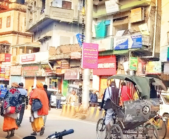 택시 안에서 차창 밖으로 바라본 바라나시의 거리 풍경은 각종 탈것들과 오래된 낡은 건물들과 어지럽게 달린 간판들로 어수선하고 혼잡했다. 사람 구경을 좋아하는 나는 그 혼잡한 거리 풍경 속에서 사람들을 찾아서 관찰하며 택시 안의 심심한 시간을 보냈다.