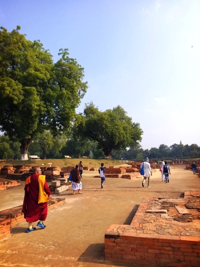사르나트 불교 발굴지는 생각보다 꽤 넓었다. 초록 잔디 위의 부서진 수많은 스투파(탑)들은 마치 폐허가 된 마을 같기도 하고, 조각 공원 같기도 했다. 내 시선에는 불교 유적지의 개념보다는 시간이 멈춘 옛 도성처럼 보였다.분위기가 꽤 좋았다.