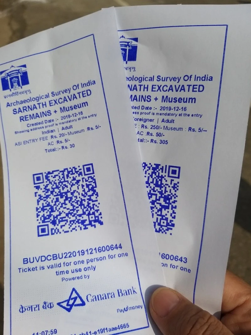 사르나트 발굴지로 넘어가면서 근처의 박물관부터 들렀다. 사르나트와 박물관, 두 곳의 티켓팅을 같은 예매창구에서 한 장으로 동시에 했다.
