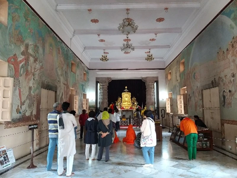 일본이 기증했다는 거대 종이 사원 입구에 매달려 있고, 법당 안에는 실물 크기로 설법하는 모습의 황금 부처상이 있는데 부처님의 진신사리가 봉안되어있다고 했다.벽에는 일본 화가가 그린 부다의 생애 프레스코화가 그려져 있다.