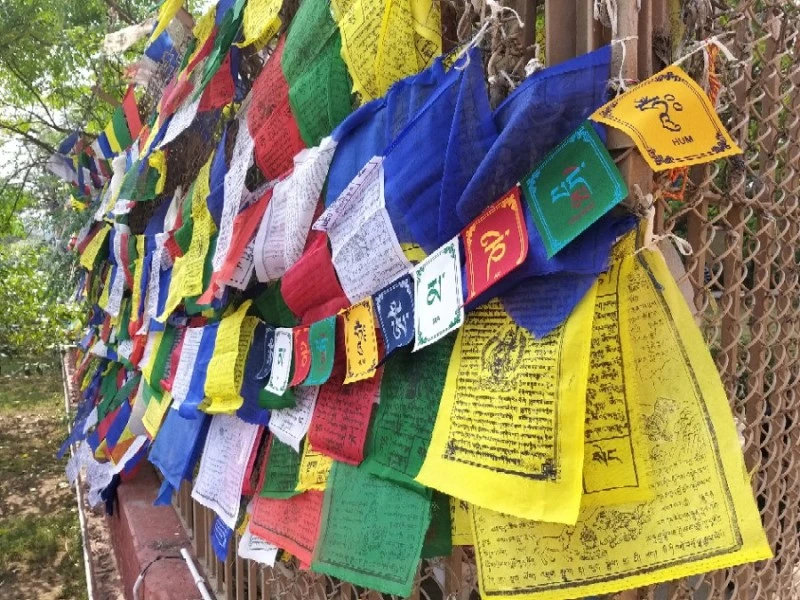 탑 근처의 잔디밭에는 네팔인 불자들이 보리수나무에 알록달록 무언가가 적힌 천을 매달고 '다메크 스투파'를 향해서 쉼 없이 절을 하고 있었다.