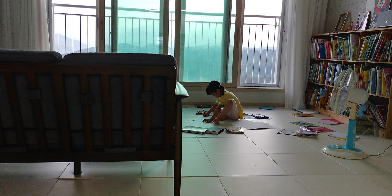 아직은 폭염 주의보가 발생해서 에어컨을 빵빵 트는 날에 환호하는 딸이다. 나도 오래간만에 냉풍을 뒤집어쓰니 그렇게 편하고 나른할 수가 없었다. 그래도 두 시간 뒤에 리모컨 버튼을 꾹 눌러 껐다. 아이는 못내 아쉬워하는 얼굴이었다.