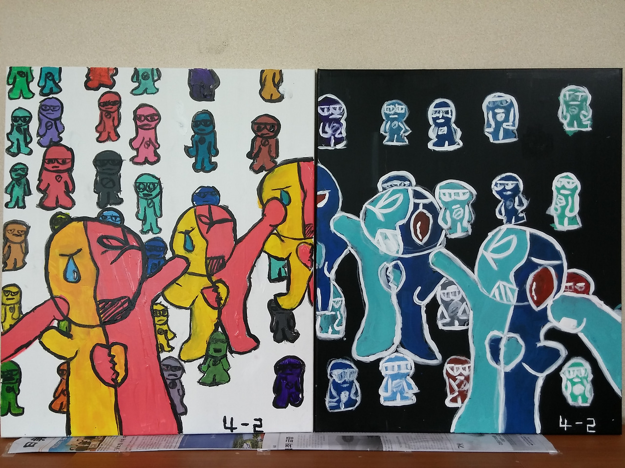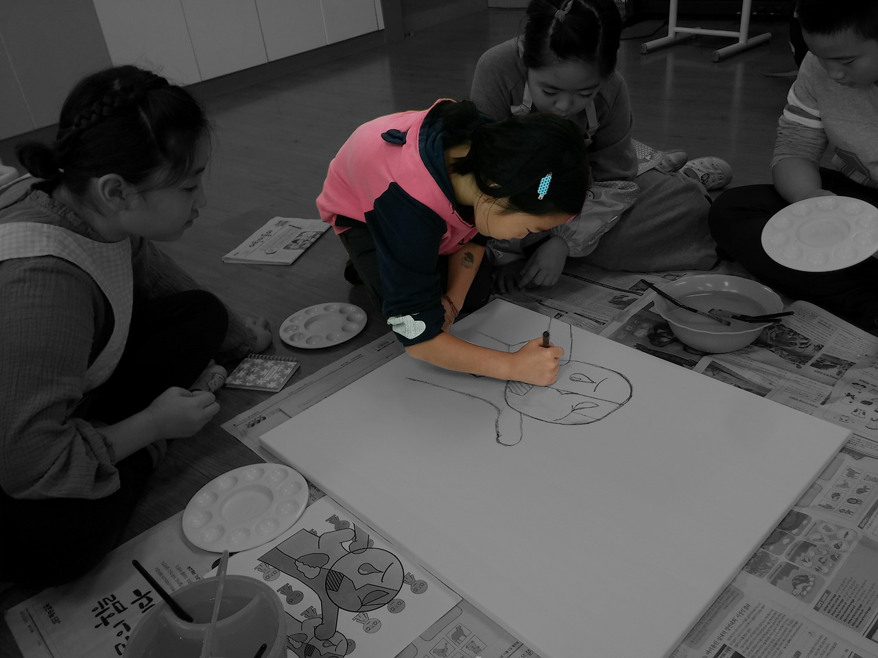 추억을 만들기로 했다. 짧은 회의를 통해 뭘 하면 좋을지 아이디어를 받았다. 벽화 경험이 있는 수민이가 협동화 프로젝트를 제안했다. 기왕이면 종이 말고 캔버스에 작업하자고 했다. 아무도 캔버스 경험이 없었다. 호응이 괜찮았다. 미술관에서만 보던 하얗고 고운 천을 만져본다는 상상만으로도 분위기는 달아올랐다. 만화 캐릭터 좀 그리는 진수는 스펀지밥 징징이를 표현할 테니 맡겨달라고 했고, 투니버스 채널 마니아 가영이는 거대 도라에몽을 담아내겠다고 했다. 거들기 좋아하는 지민이와 상훈이가 자기도 미술학원 다녀봤다고 추임새를 넣는다. 용기백배! 이대로라면 레오나르도 다 빈치 뺨이라도 칠 수 있다는 확신이 들었다.