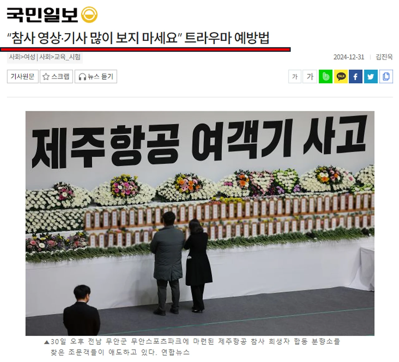 무안공항 비행기 사고 이후 전라남도의사회와 광주시의사회는 사고 피해자와 유가족을 위한 심리 치료를 제공하기로 했다. 정신건강의학과 전문의들이 참여하며 심리 치료와 약물 치료 지원까지 진행하고 있다.