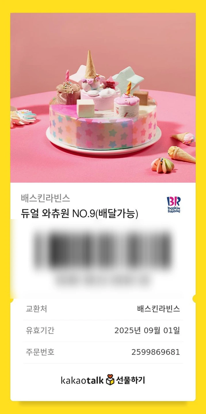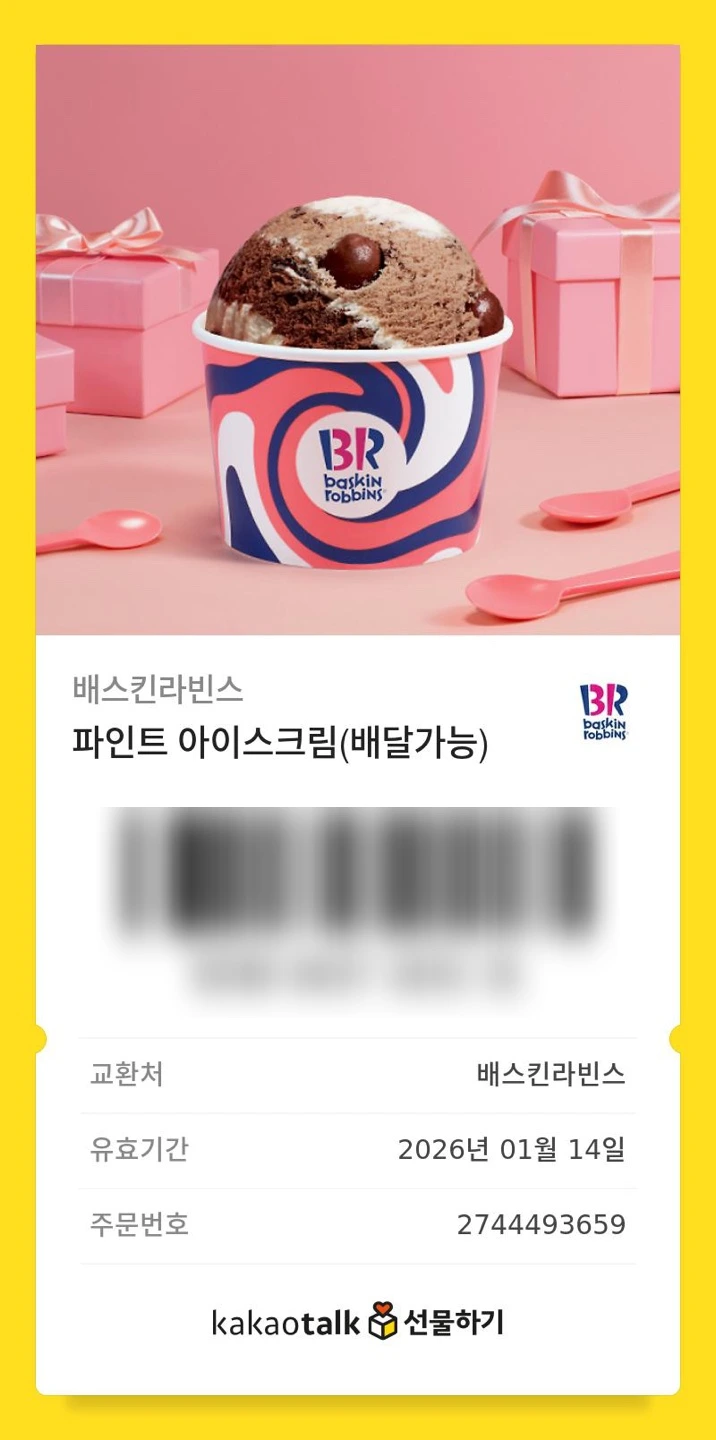 날씨가 추워서 안 쓰는 케이크 기프티콘을 두 개 꺼냈다. 우리가 배스킨 라빈스를 이용하는 시즌은 봄부터 가을까지다. 겨울은 비시즌이라 기프티콘은 원두로 바꾼다.