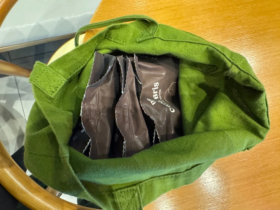 에코백에 원두 세 개를 담았다. 아저씨가 에코백을 들고 다니는 것이 신기했는지 점장님이 좋은 일 하신다고 칭찬해 주셨다. 머쓱했다.