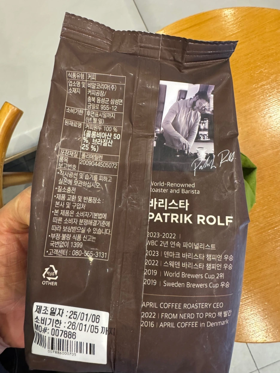 구성을 보니 콜롬비아 50%, 브라질 25%. 나머지 정보는 없다. 아마 여러 원두를 섞어 적당히 배합한 듯 하다.
