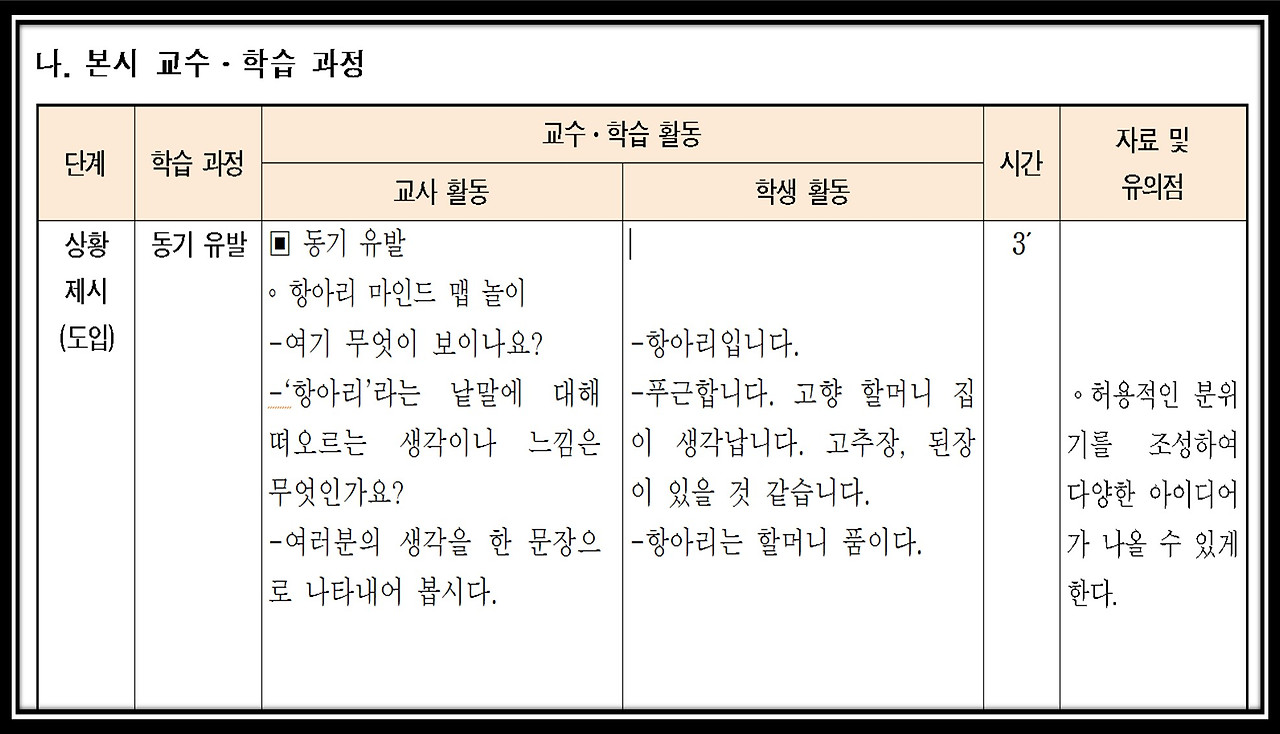 수업 전날 밤 빌고 또 빌었다. 두려웠다. 학부모들이 뒤에 앉아있다는 상상만으로 초조해졌다. 무능을 들키지 않으려 치밀하게 설계했다. 우선 학습자 움직임을 최소화하였다. 소란해지기 쉬운 토론, 액션러닝, 브레인스토밍 따위는 뺐다. 수업 진행 상황을 가정하여 이렇게 말하면 저렇게 행동하겠지 식으로 대본까지 작성했다. 또한 각 단계마다 다량의 쓰기 학습지를 첨부하였다. 침착하고 차분하게 40분 때우려는 심산이었다.