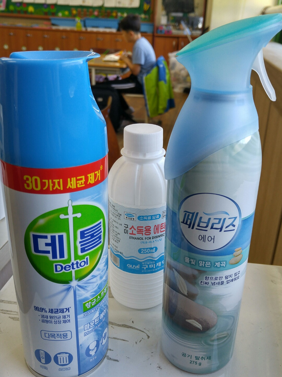 교실에 비치되어 있던 데톨 향균 스프레이와 페브리즈 에어를 치웠다. 30가지 세균을 99.9% 제거한다는 화학 물질을 쓰레기통 바닥, 사물함 뒤, 창틀에 뿌리고 닦았다. 책걸상에 사용하지 않아 천만다행이었다. 미세먼지가 심하여 창문을 못 여는 날이면 '진짜 냄새를 없애준다'는 공기탈취제를 분사했다. 죄책감이 들었다. 청결을 유지한다는 명목으로 제자들에게 못씁짓을 하였다. 생활용품이 살인도구가 되는 현실 속에서 나는 아이들에게 사과할 일이 있었다.