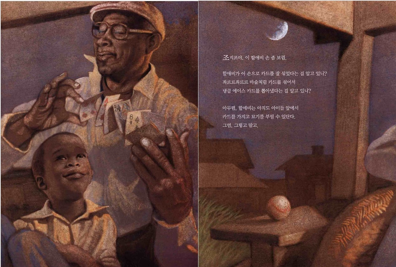 뭘 또 보라는 것일까? 이번에는 트럼프다. 노련한 마술사는 두툼한 손으로 좌르르 좌르르 카드를 섞어 냉큼 에이스 카드를 뽑아낸다. 손주는 밤하늘 불꽃놀이라도 마주한 양 흐뭇하게 카드 넘어가는 장면을 지켜본다. 우와~ 유희왕 카드놀이를 즐겨하는 강준이 입에서 함성이 터져나왔다. 그러자 심드렁하게 앉아있던 민오의 한 마디.