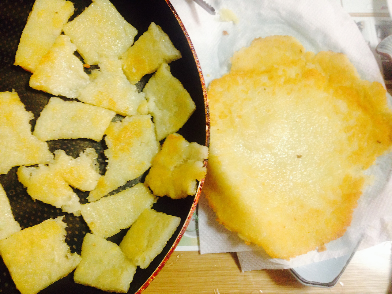 호들갑스런 칭찬이 싫지 않았습니다. 그런데 바삭한 가장자리만 인기 좋게 팔렸습니다. 안쪽 은 부드럽고 촉촉해서 나름의 식감이 괜찮은데 도시 손님 입맛에는 맞지 않았나 봅니다. 접시 위에 덩그러니 남은 안 바삭한 덩어리를 잘라 다시 구웠습니다. 뒤집개로 꾹꾹 눌러 앞뒤 고소하게 지졌습니다.