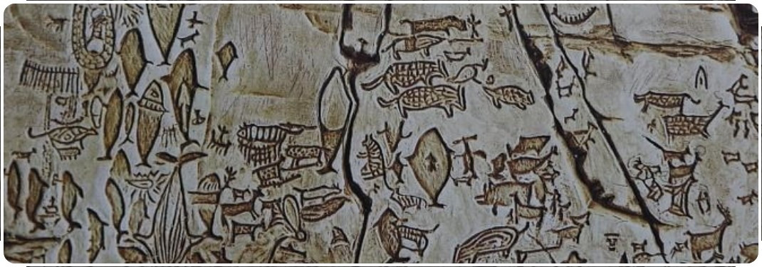 암각화에 새긴 고래 등 동물들 (울진 대곡천 반구대 암각화)