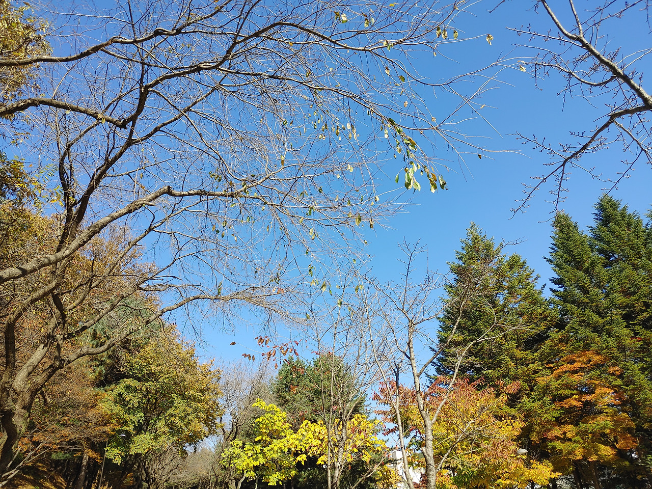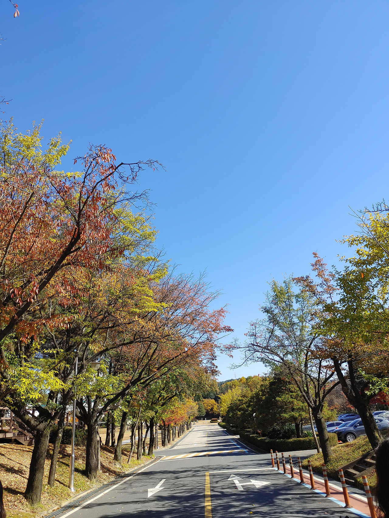 무성한 가을을 보며 마냥 행복하다. 비어가는 가지쌓이는낙엽만큼이나 가을은 더 깊어지고 스산하다. 빈공간이 주는 넉넉함, 쌓인낙엽이 주는 따스함이 바로 가을의 매력이다. 오늘도 나는 공활한 하늘을 경이롭게 쳐다본다. 비어감과 채워감은 항상 함께한다. 게다가 형형색색의 단풍이라니. 기후변화가 내일당장 모든걸 삼키더라도 지금만큼은 축복이다. 내일 기후변화가 벼락처럼 와서 열기로 가득찬다면 그냥 선 자리에서함께 익어가면 된다. 불위 올려진 솥 안에 든 개구리처럼 말이다. 불 끄는 것도 죽어사라지는것도바로 우리들일이지만 지금 당장 사라지지 않아서 외면이다. 아니, 미래 생명체 일이라서 모른체다. 태어나보지도 못한채 죽어야는 생명체. 지구 생명들이여! 고개들어 사람들에게전하라. 당신들의 현재가 미래를갉아먹고 있다고. 미래로 가는 길은 점점 더 옅어지고 있다