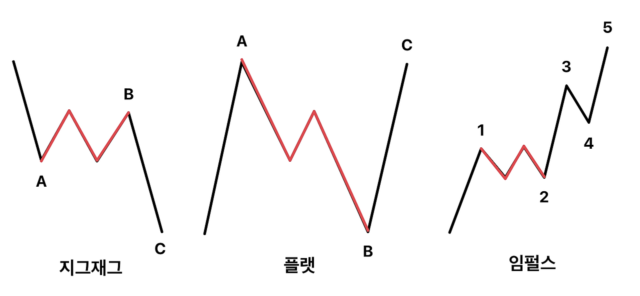 첫 번째 조정 패턴이 지그재그 일 때
