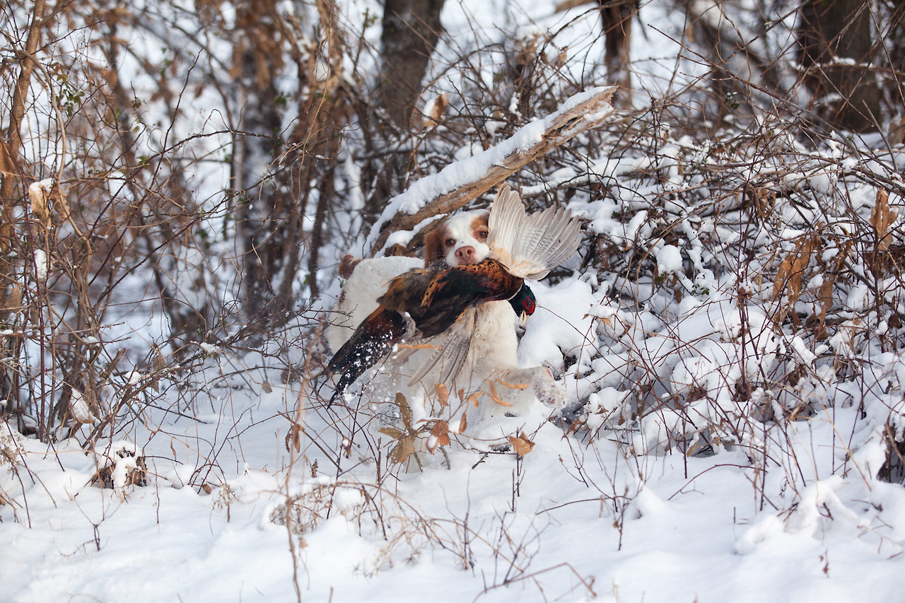 사냥개(Pointing Dog)의 목에 채워놓은 훈련기에서 규칙적으로 울리던 비프음의 속도가 빨라졌다. 개들이 걸음을 멈춘 채 기다리고 있다는 의미다. 훈련된 엽견은 쉴 틈 없이 탐색하다가도 고립된 목표물을 발견하면 즉시 정지해 주인을 기다린다. 긴장된 순간이 지나고 비장하게 응시만 하던 개들이 신호와 함께 달려들자 장끼 한 마리가 날아오르며 모습을 드러냈다. 일순간 총소리는 완강했고 새는 미리 겨누고 있던 산탄에 날갯죽지를 맞고도 시야에서 벗어나기 위해 진력을 다했다. 얼어붙은 수락계곡과 금남정맥의 산봉우리가 그의 검은 눈동자 속으로 쏟아져내렸다. 겨울 하늘에 눈송이와 깃털이 함께 날렸다. 얼마 가지 못해 떨어진 지점은 엉클어진 찔레 덤불 속이었다. 막막한 수풀 속에서 찬 숨을 고르며 겨우 몇 발짝 내디뎠을 때 엽견 무리 중 경력이 가장 오래된 아메리칸 브리타니(American Brittany) 견종 산이가 서릿발을 파헤치고 뛰어들어 왔다. 곧이어 장끼의 눈이 캄캄해지고 동료 개들이 내심 부러운지 입을 굳게 다문 산이 주위로 다가와 컹컹 짖어댔다. 내년이면 이순(耳順)을 바라보는 김신배 엽사가 총을 거두고 5년째 파트너로 지내는 견공과 죽은 꿩의 상태를 함께 살폈다. 12월 초순에 내리는 폭설을 맞으며 상황을 지켜보던 마음은 일희일비했다. 힘없이 몸을 늘어뜨린 꿩이 안타까운 한편 생기 넘치는 개들과 초로의 포수를 원망할 이유는 얄팍했다.