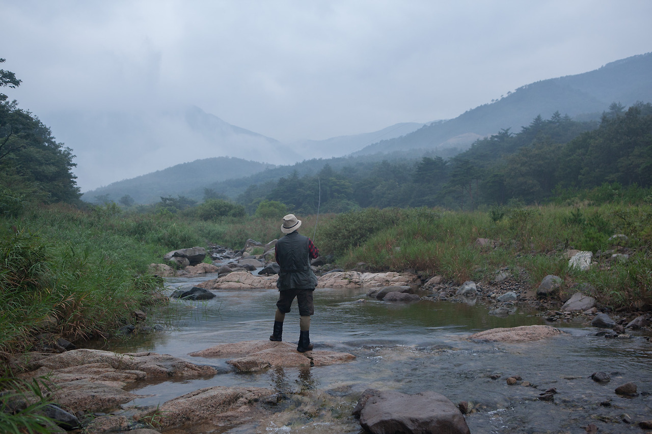 비가 제법 쏟아지다 사그라진 아침 도원리 계곡을 내려왔다. 물에 젖은 배낭이 팽팽하게 어깨를 당긴다. 간밤부터 내린 비 때문에 수량이 제법 늘어난 웅덩이에 캐스팅을 몇 차례 더 하고 한 마리를 잡았다가 풀어주었다. 플라이 낚시의 매력은 캐스팅과 함께 동물의 털을 이용해 수서곤충 모양의 미끼를 만드는 타잉(Tying)도 빼놓을 수 없다. 현지에서 자주 발견되는 곤충의 모양과 색깔을 확인하고 즉석에서 훅을 직접 제작하는 작업은 이 영역의 또 다른 재미다. 준비부터 릴리즈까지 오랜 의식의 한 과정 같은 모습. 플라이낚시는 세밀한 기술을 요하는 만큼 어렵고 까다로울 뿐더러 장비의 가격도 비싸 도전하기란 쉽지 않다. 나는 비록 바라볼 수밖에 없었지만 영화의 한 장면을 연상케 하는 멋진 풍경. 플라이 낚시가 문득 자연과 인간의 공존에 에티켓과 매너가 필요한 시대라는 것을 알려준다.