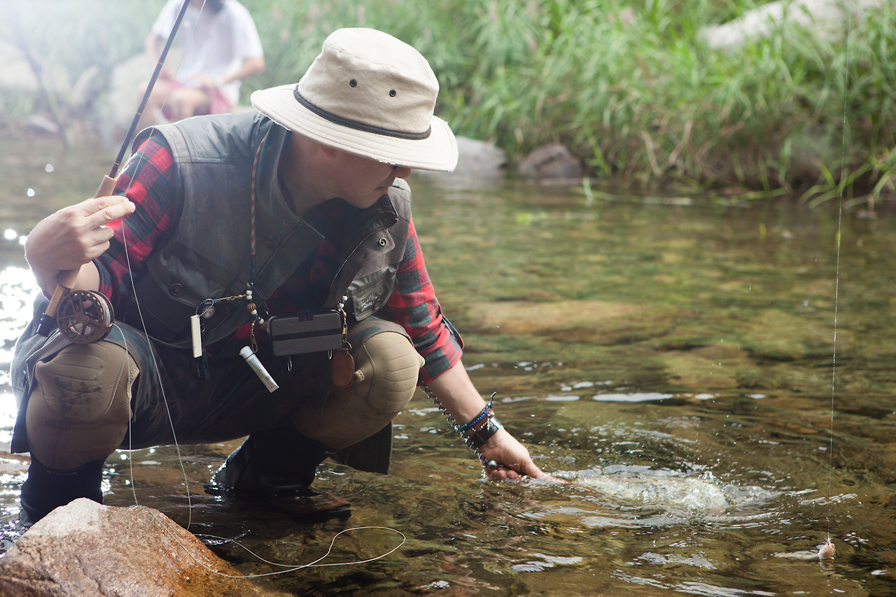 왜 플라이 낚시를 환상이라고 생각했을까? 제법 손바닥 크기만한 물고기가 단 한 번의 시도로 훅을 삼켰다. 김 선배는 라인을 감아 뜰채로 물고기를 떠올리고는 단 번에 미끼를 뽑고 놓아준다. 물고기를 풀어줄 때 역시 손의 온기나 악력이 치명적인 상처를 줄 수 있기에 매우 신중해야한다. 포획한 물고기를 다시 방류해주는 활동은 플라이 낚시에서 시작된 문화다. 1905년 알래스카에서 태어난 리 울프(Lee Wulff)는 무분별한 남획을 절제함과 동시에 플라이 낚시를 단순한 고기잡이의 과정이 아니라 스포츠 피싱 문화로 발전시키고 싶어 했다. 그가 제창했던 ‘캐치 앤 릴리즈(Catch & Release)’는 당시의 앵글러들에게큰 반향을 불러일으켰고 현재까지 많은 이들의 지지를 받고 있다.