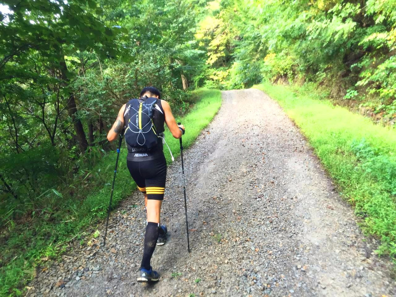 UTMJ 대회는 클라이밍 의류 브랜드인 CAYL의 이의재와 동반 완주를 목표로 준비했다. 이의재는 강원도 대관령과 선자령을 잇는 TNF 100 코리아 대회에서 50K 코스를 완주한 경험이 있다. “먹는 것이 정말 중요하다”는 그의 조언대로 경기 중 바닥난 탄수화물과 아미노산을 보충해줄 수 있는 에너지 젤을 충분히 휴대했다. 이것이 무릎 부상으로 신음하던 내가 레이스 후반부에도 쉬지 않고 걸을 수 있었던 원동력이 됐다고 생각한다. 이밖에 아디다스(ADIDAS)의 ‘Agravic GTX’ 트레일 러닝슈즈 외 쇼츠와 양말, 하이만(HEIMAN)의 러닝 싱글렛, 파고 웍스(PAAGOWORKS)의 ‘Rush 7’ 트레일 러닝 백팩, 블랙다이아몬드(BLACK DIAMOND)의 ‘Z’ 폴 등을 사용했다. 모든 장비와 의류가 만족스러웠다. 그중에서도 파고 웍스의 트레일 러닝 백팩은 조끼처럼 상체에 밀착되는 디자인으로 하중이 느껴지지 않았고 달리면서 물과 에너지 젤을 꺼내먹기도 편리했다.