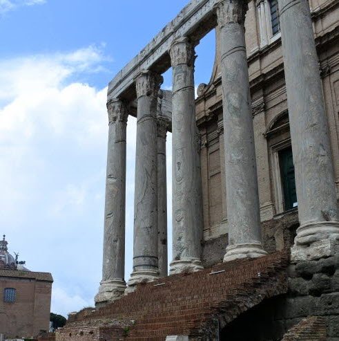 로마의 황제 안토니누스가 그의 아내 파투스티나가 죽자 그녀를 추모하기 위해 세운 신전도 잘 보존되어 남아있다. 현관의 콜로네이드 기둥들은 총 8개로 높이가 17m나 된다.