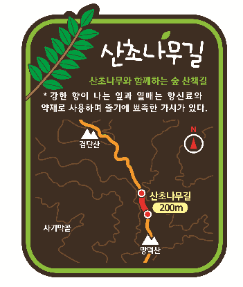 전나무 숲길을 지나면 다음으로 마중 나온 산초나무 숲길을 볼 수 있다.