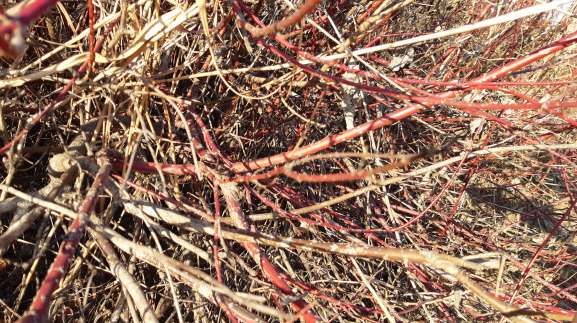 수수꽃 뿌리가 아니라 흰말채나무가 아니었을까 생각하게 만드는 붉은 나뭇가지.