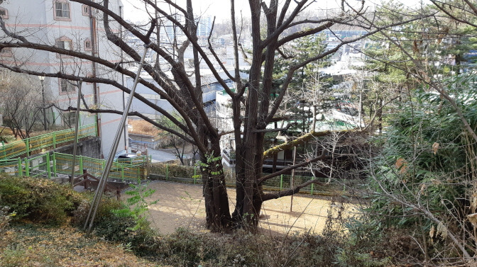 은행나무는 성남시를 상징하는 나무이기도 하다. 척박한 토질에서 적응을 잘한다고 하여 노력하는 시민을 상징하는 나무라고 한다. 무계획적인 도시정책을 면피할 만큼 잘도 갖다 붙였다. 민둥산에 사람들을 몰아놓고는 앞으로 그들의 고단한 삶을 위로하듯 은행나무는 척박한 곳에서도 잘 사니 나무를 닮으라고 훈시하는 것 같다. 결국, 부모세대는 강인함으로 삶의 터전을 마련하고 열매 맺어 다시 자식들이 제 삶의 터전을 마련할 수 있게 하였다. 의도야 어떻든 은행나무를 가까이 두니 그 품성을 닮게 되었나 보다.