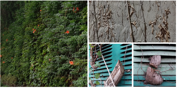 그런데 어느 날, 내가 줄곧 다니던 길에서 무참한 일이 벌어지고 말았다. 수 십 년간 다녔던 담장을 여름이 되면 노랗고 붉은 꽃으로 온통 장식했던 능소화 가 무참하게 잘려 나갔다. 매년 여름이 되면 능소화를 볼 수 있다는 기쁨과 기 다림이 있던 담장이었다. 그런 마을의 자랑이었던 능소화 수십 그루를 잔인하 게 싹둑싹둑 잘랐다. 덕분에 어여쁜 초록 담장 정체가 콘크리트 기초에 선 방음 벽이라는 것이 드러났다.