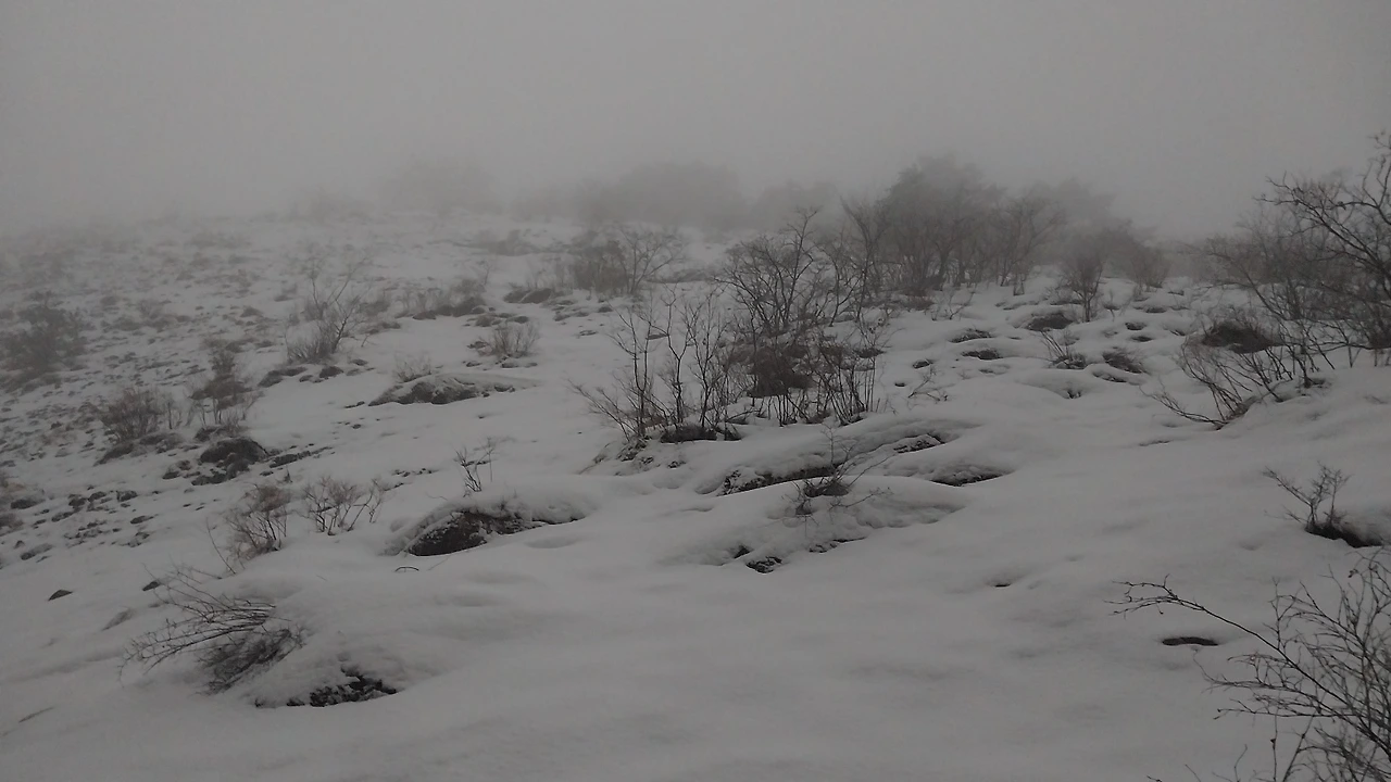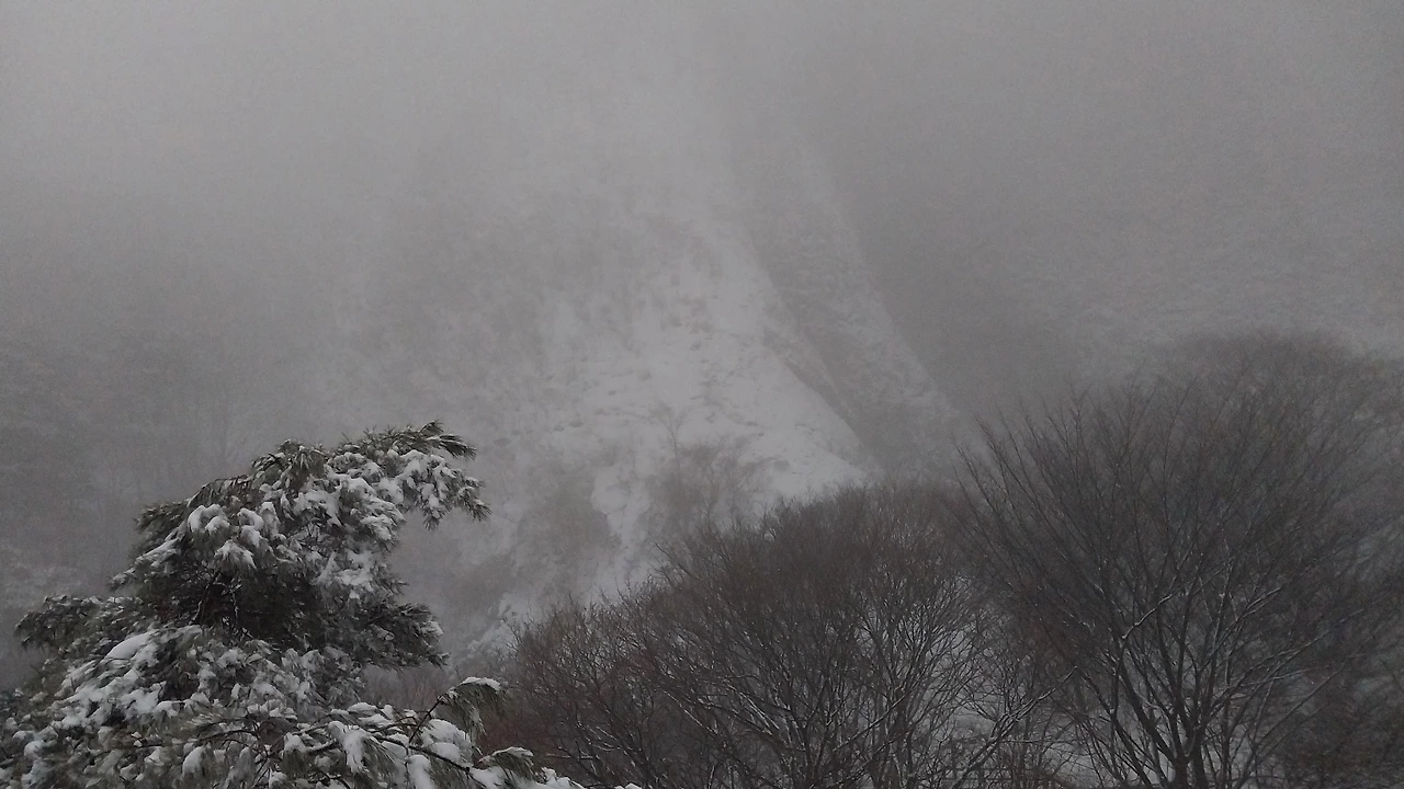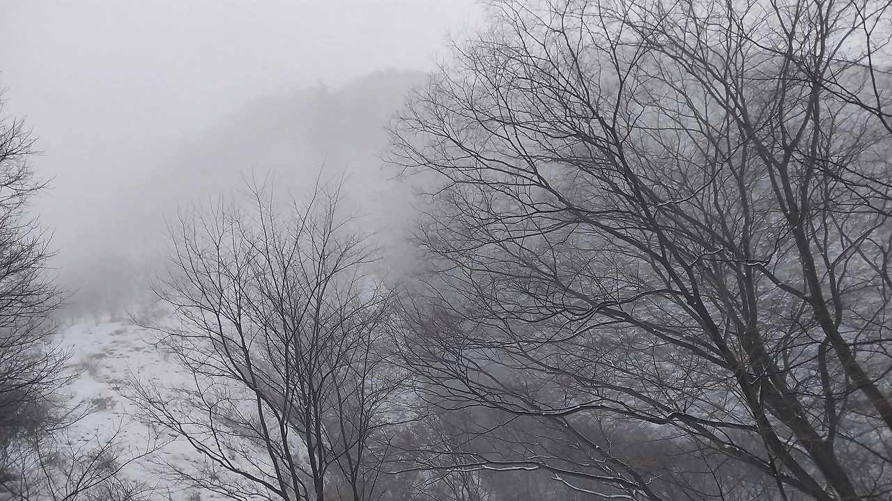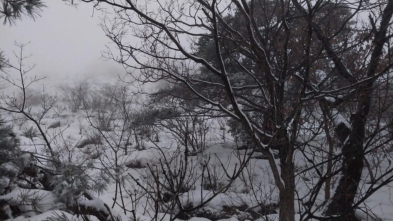이제, 눈이 그쳤다. 핑계됐던 강설마저 그쳤으니 이제 하산하는 것이 당연하다. 이렇게 흐리고 눈 내린 날에 무슨 일출이 있겠는가? 바로 앞에 있는 암마이봉, 숫바이봉 정상조차 보이지 않는다.