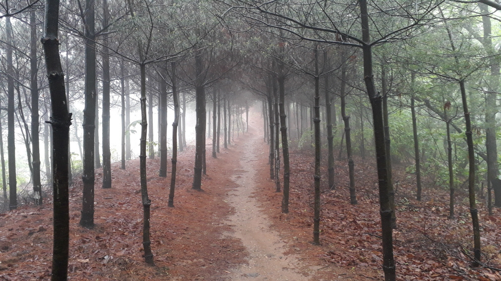정자가 놓인 길부터는 정자동 시가지로 가는 샛길이 많아 사람들이 많이 하산하였다. 등산로는 그 폭이 점점 좁아지더니 비로소 완연한 숲길처럼 낙엽도 쌓이고 인적도 드물게 되었다. 오는 동안 사람들 틈 속에서 바쁜 듯이 잰걸음으로 왔었다. 산길이 호젓해지니 발걸음도 느려지고 가쁜 숨도 진정이 되었다. 산길은 지나온 활엽수림과 달리 스트로브잣나무나 리기다소나무, 소나무 등의 침엽수림이 골고루 많이 자라났다. 활엽수림도 나름 숲이 활력 있게 보이나 침엽수림은 숲의 그윽한 풍취를 보여준다.
