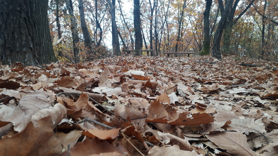 불곡산 오를 때의 번잡스러움과는 달리 내려가는 길은 마주치는 사람이 드물다. 산행 막바지에 이른 안도감 때문인지 이런 생각 저런 생각에 빠지며 나무들 속을 천천히 걸는다. 홀로 산에 왔으니 보폭이 느리다 탓하는 이도 없으니 느리게 걸을 수 있다. 가끔은 산속에서 느리게 걷는 여유도 가질 필요가 있다. 그러면 비로소 보지 못한 것들이 보인다. 가까이에서는 잎사귀와 멀리 서는 숲을 동시에 볼 수 있다. 먼저 산속에서 여러 나무가 서로 다른 모습으로 서 있는 것을 수 있는 것을 볼 수 있다. 다른 질감의 나무줄기와 길고 짧은 나뭇가지, 좁고 기다란 잎도 구분할 수 있다.