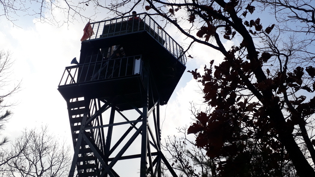 소나무 숲 위로 산불감시탑이 솟아 있는 것이 보였다. 바다 한가운데 서있는 등대지기처럼 감시탑도 숲 한가운데 외따로이 서 있다. 시민 전망대라는 높은 산불감시탑에 오르면 정자에서 내려다본 풍광보다 더 멋진 풍경을 볼 수 있다.