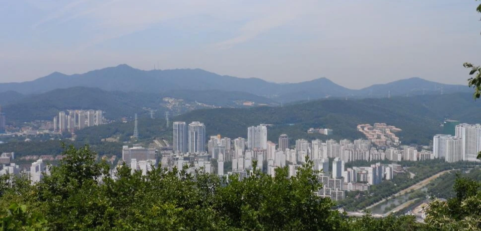불곡산 정상을 기점으로 능선을 타고 내려가면 산 비탈면 쪽으로 정상에서 마주친 정자가 다시 나온다. 이곳에 정자가 들어선 것도 나름 이유가 있는데, 정자 마루에 들어서면 사방 시야가 탁 트여서 산 밑에서 올라오는 시원한 바람을 맞을 수 있다. 시내를 관통하는 넓은 시내가 보였다. 도심 중앙에는 탄천이 흐르고 아파트 숲 뒤로 태봉산 줄기와 그 너머 청계산 망경대도 보였다. 뒤로도 바라산과 백운산, 광교산도 아스라이 보였다. 그 너머는 구름인지 능선인지 하늘과 산 경계를 뚜렷하게 짓지 못하고 뿌옇다.
