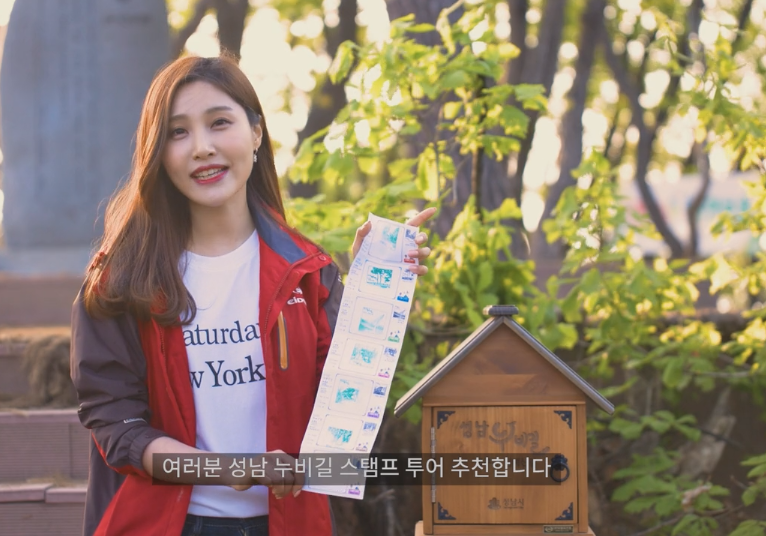 김세희 아나운서가 더불어 누비는 아름다운 숲길이라는 성남 누비길을 홍보하기도 했다. 밝고 화사한 등산복을 입고 산성공원 관리사무소에서 스탬프 투어북을 직접 수령하고 1구간부터 걸어가면서 완주 인증 스탬프를 찍었다.