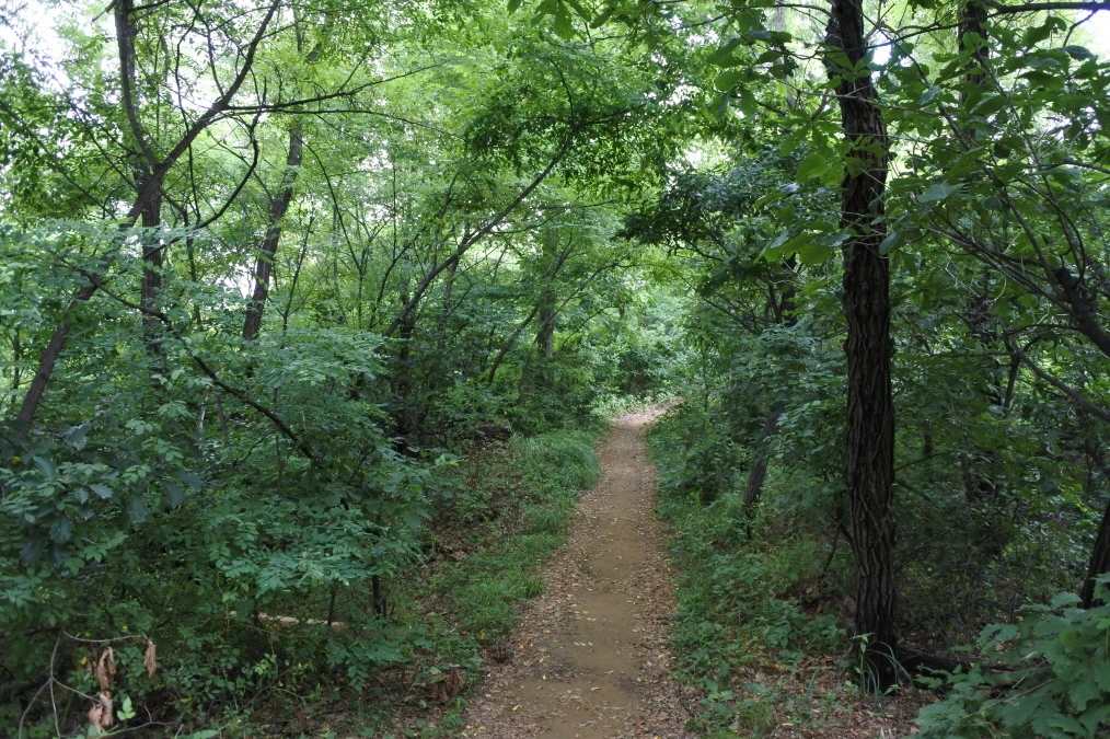 누비길 첫 구간이라는 의미를 담은 듯 도심 속에서 숲으로 들어가는 길은 건물과 도로 사이 완충녹지 가운데 놓여 있다. 완충녹지가 도로로부터 생활공간인 주택가의 안전과 건강을 확보하기 위하여 만든 녹지인데, 누비길에서의 완충녹지는 인간으로부터 숲의 안전을 위하여 만들어진 완충지대 같기도 하다.